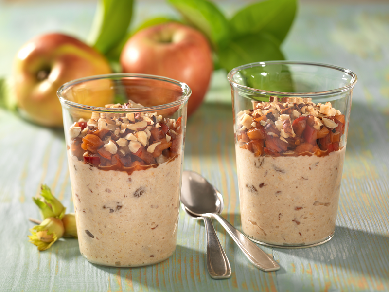 Overnight-Oats mit Apfelkompott und Nusstopping