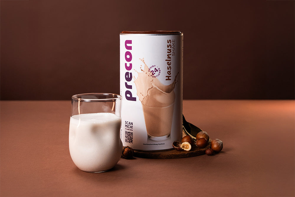 Le shake aux noisettes Precon est un véritable produit polyvalent : agréablement noiseté, crémeux et varié.