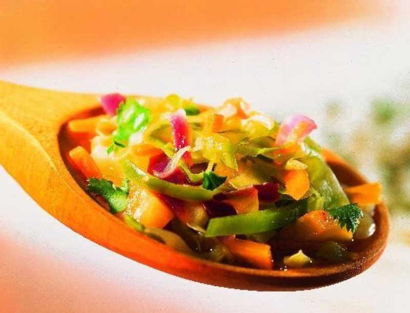 Petto di tacchino su verdure di ravanelli e funghi champignon con insalata mista e sorbetto ai mirtilli