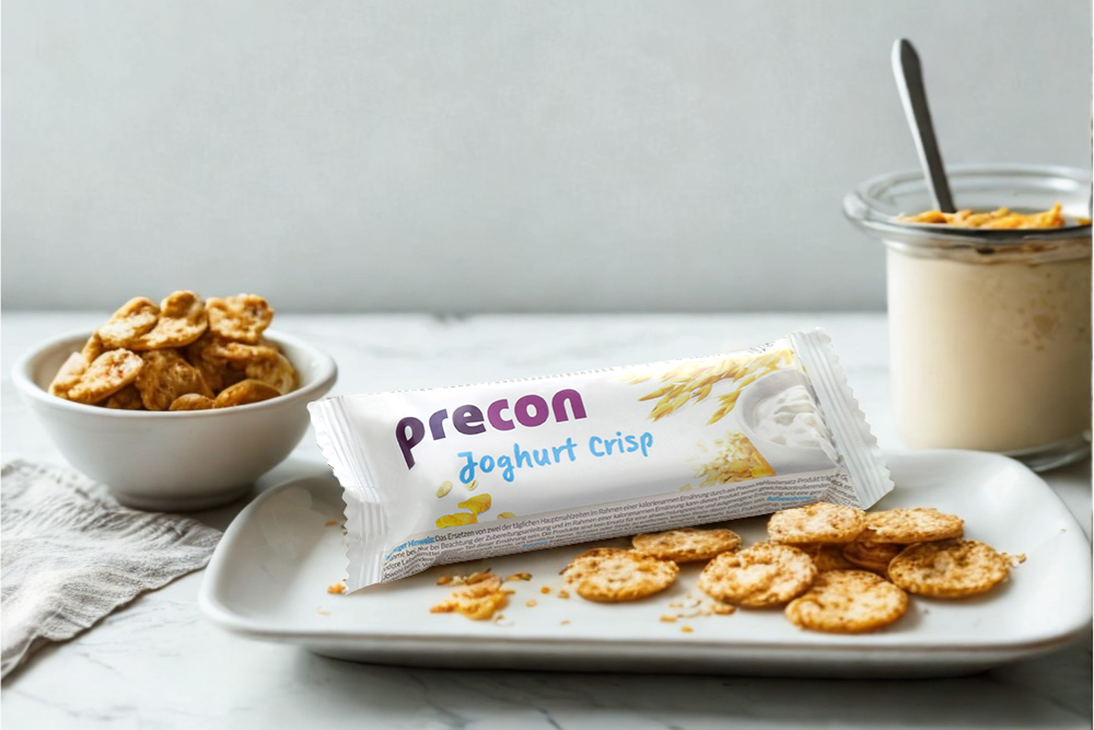Le nostre gustose barrette Precon sostituiscono un pasto completo, ti forniscono proteine di alta qualità, fibre, oltre a 23 vitamine e minerali – e tutto questo con circa 230 kcal per barretta.