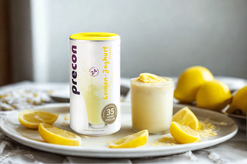 Il Shake Yogurt-Limone Precon è rinfrescante, leggero e cremoso.
